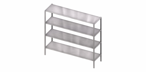 Rafturi inox depozitare - structura sudata cu 4 polite pline si picioarele din teava rectangulara